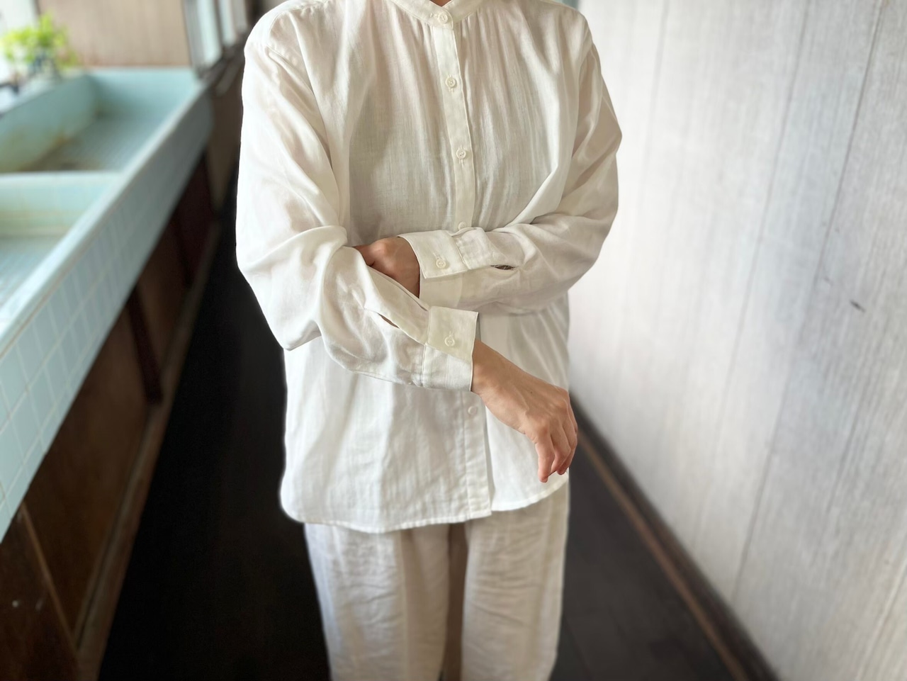 春夏は1枚でさらりと、秋冬はセーターのインナ一、ワンピースに重ねるなど通年でお愉しみ頂けます