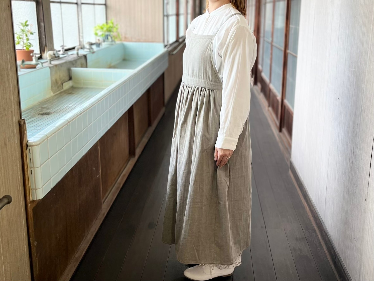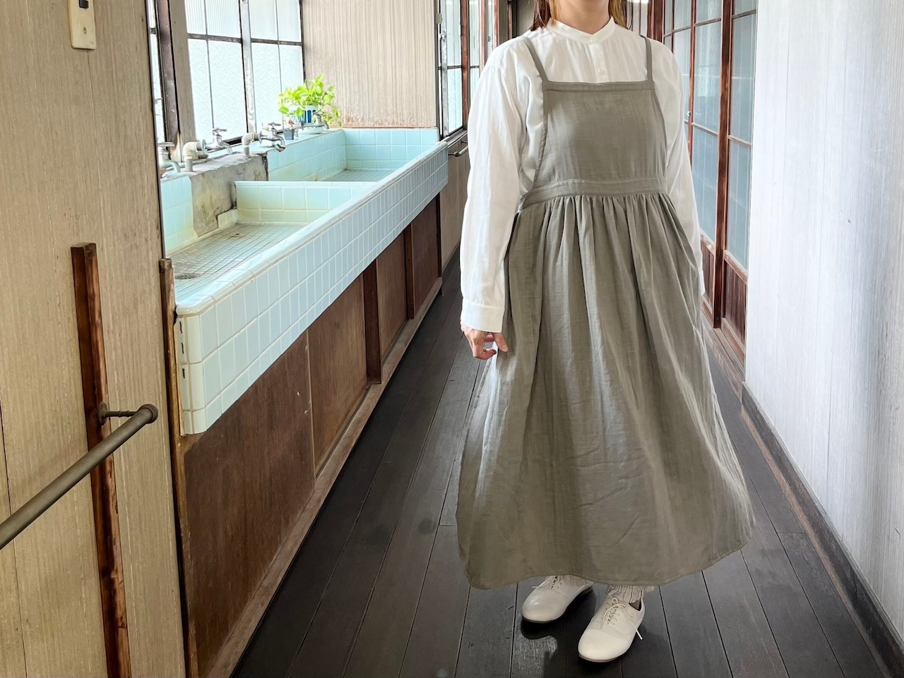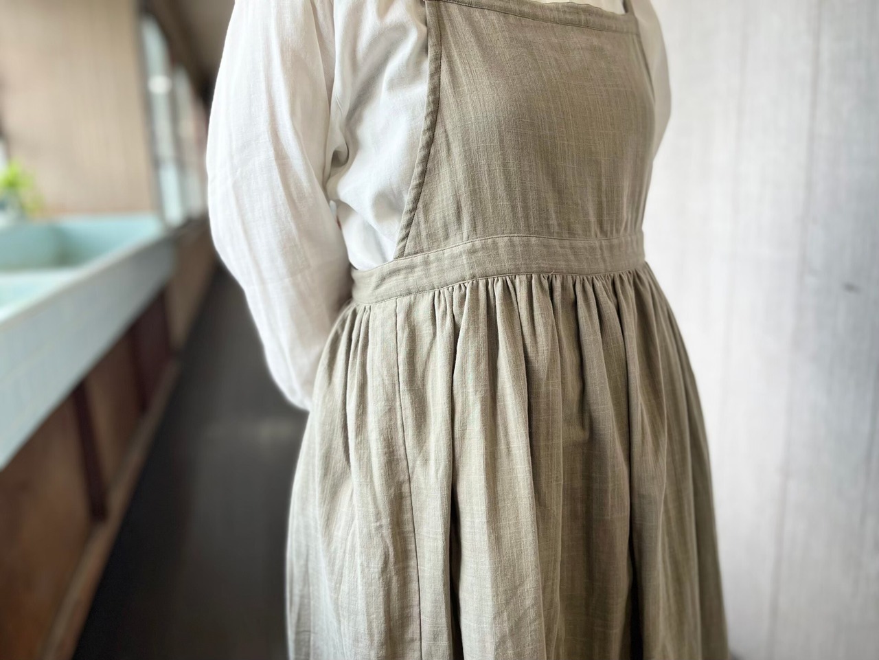 エプロンワンピース(オリーブ)