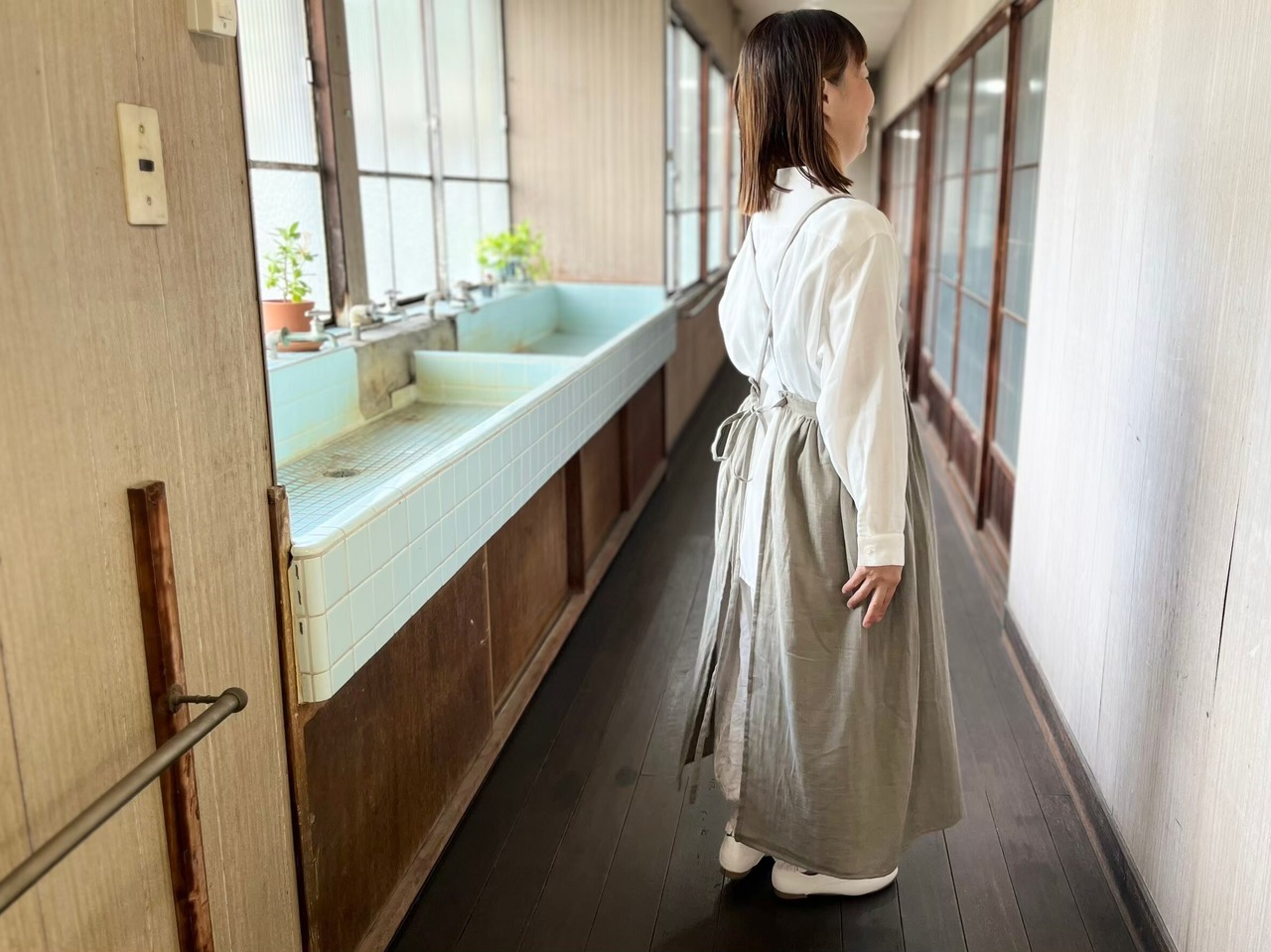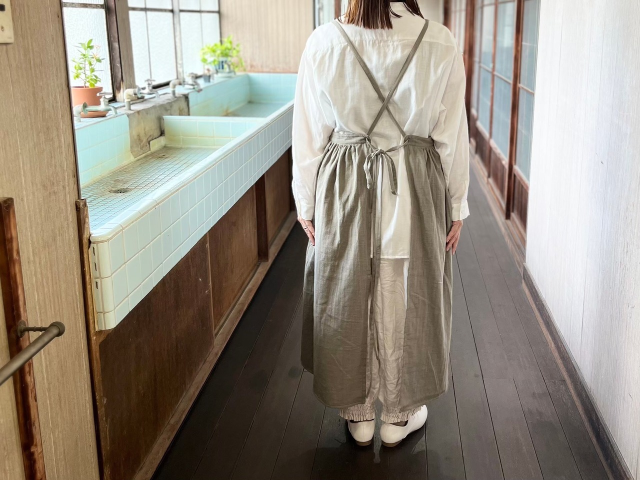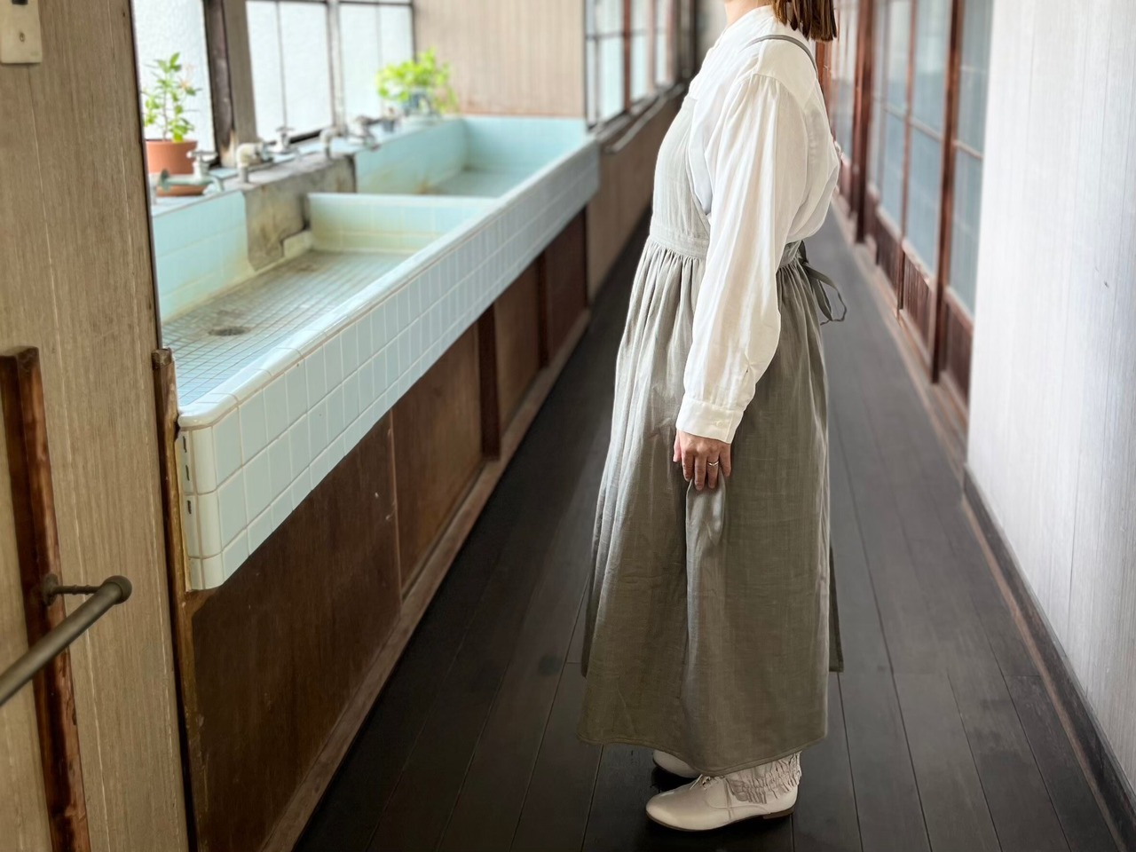 エプロンワンピース(オリーブ)