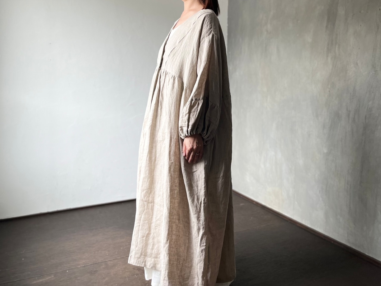 ワンピースとしてはもちろん、前を開けて羽織ればコートのようにも使え、季節や着こなしに合わせて楽しめます。