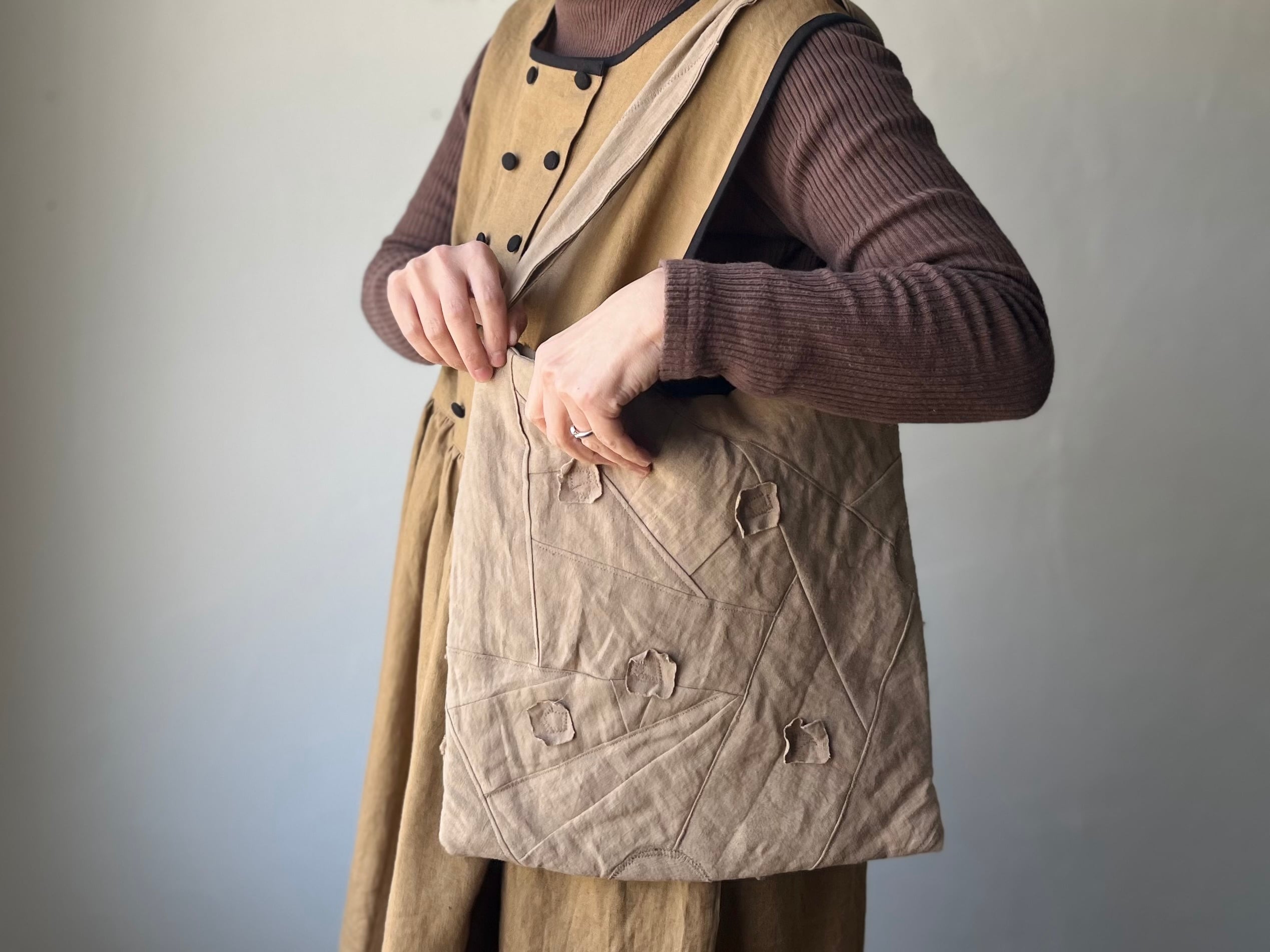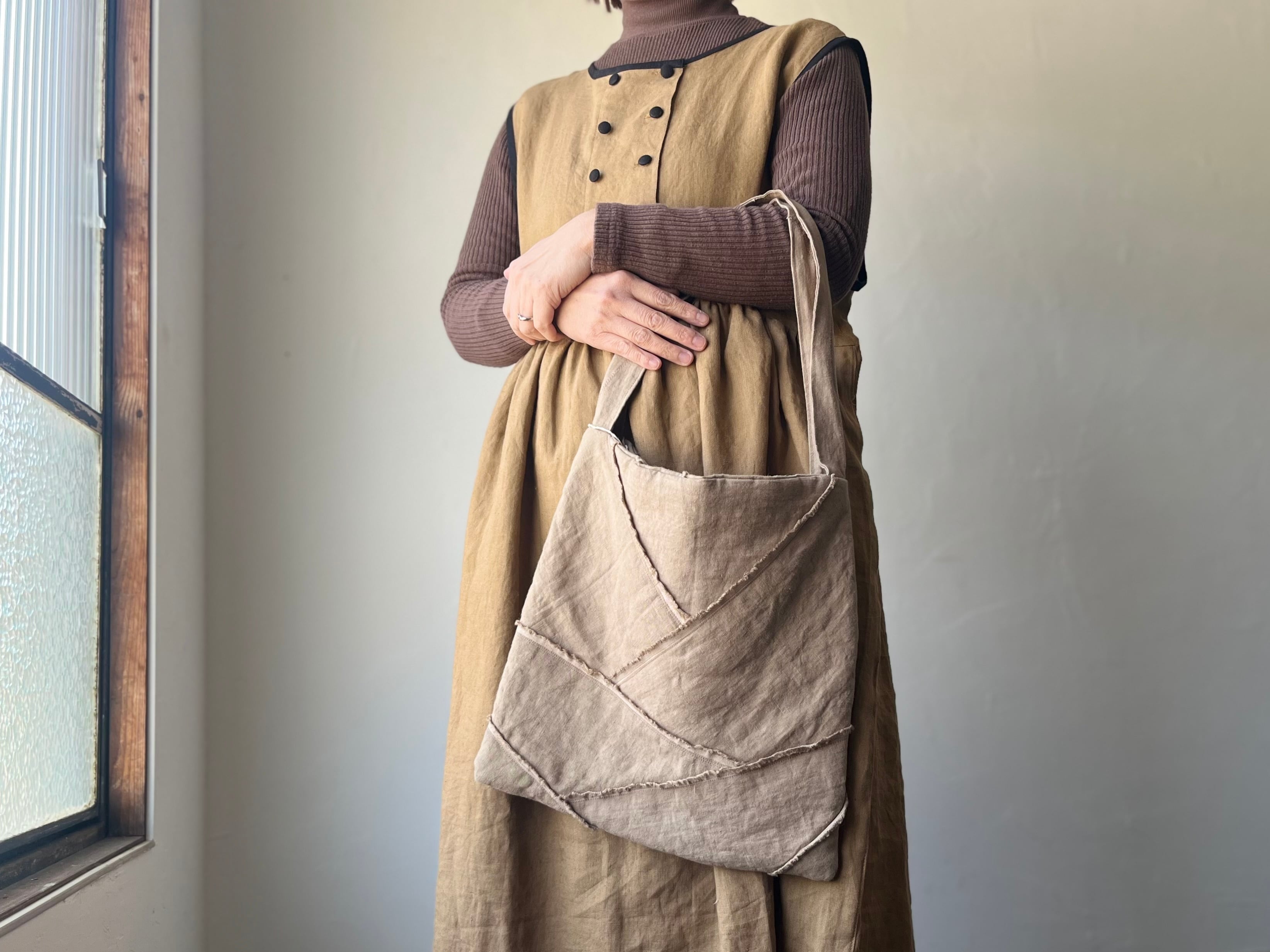 コットンやリネン生地を裂いて編んだりまとめたり、天然石やウッドビーズなど様々な素材と組み合わせたり、自由な発想でアクセサリーやバッグを製作しています。